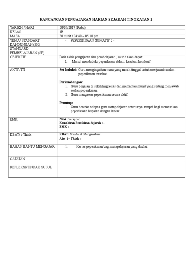Rancangan Pengajaran Harian Sejarah Pdf